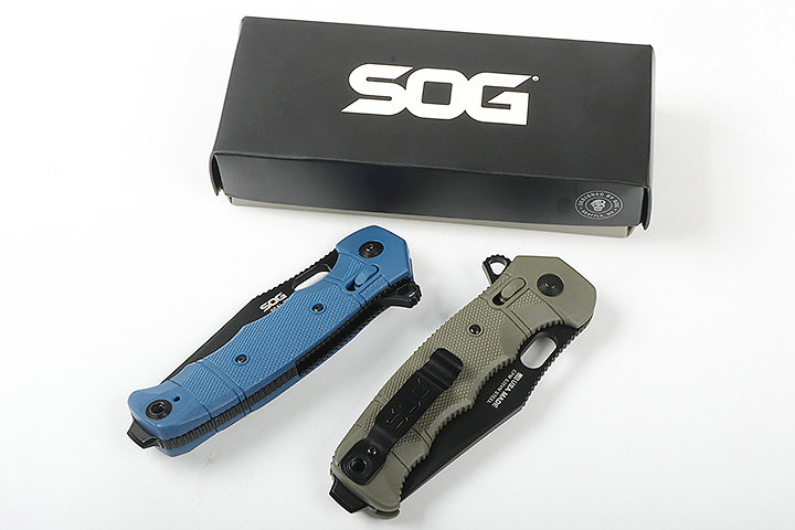 其 它;原厂彩盒,SOG背夹。黑色刃,手柄分黑,蓝,绿三色,下单请注明。